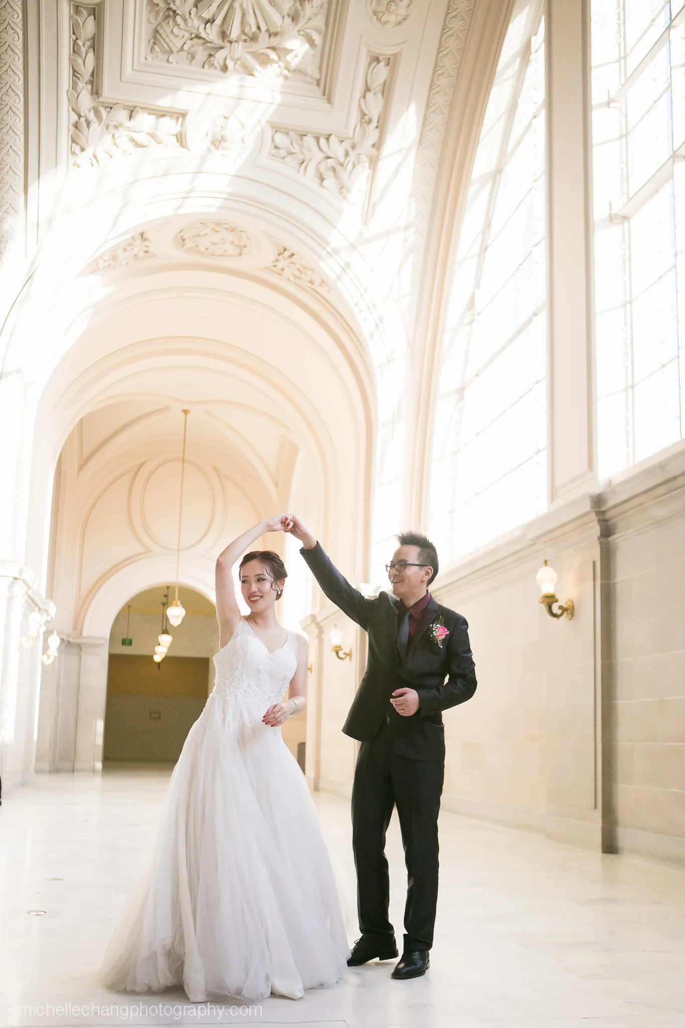 After the civil ceremony we visited each floor for photos to keep this day extra memorable. The photo session ended in the afternoon with soft sun rays shining on the elegant San Francisco city hall.