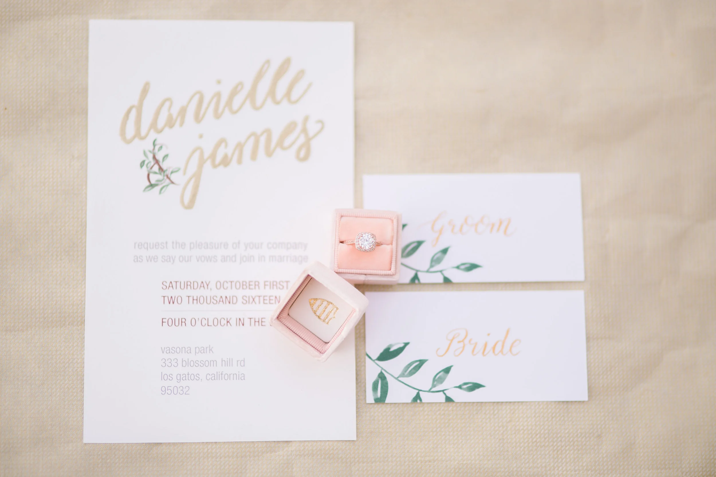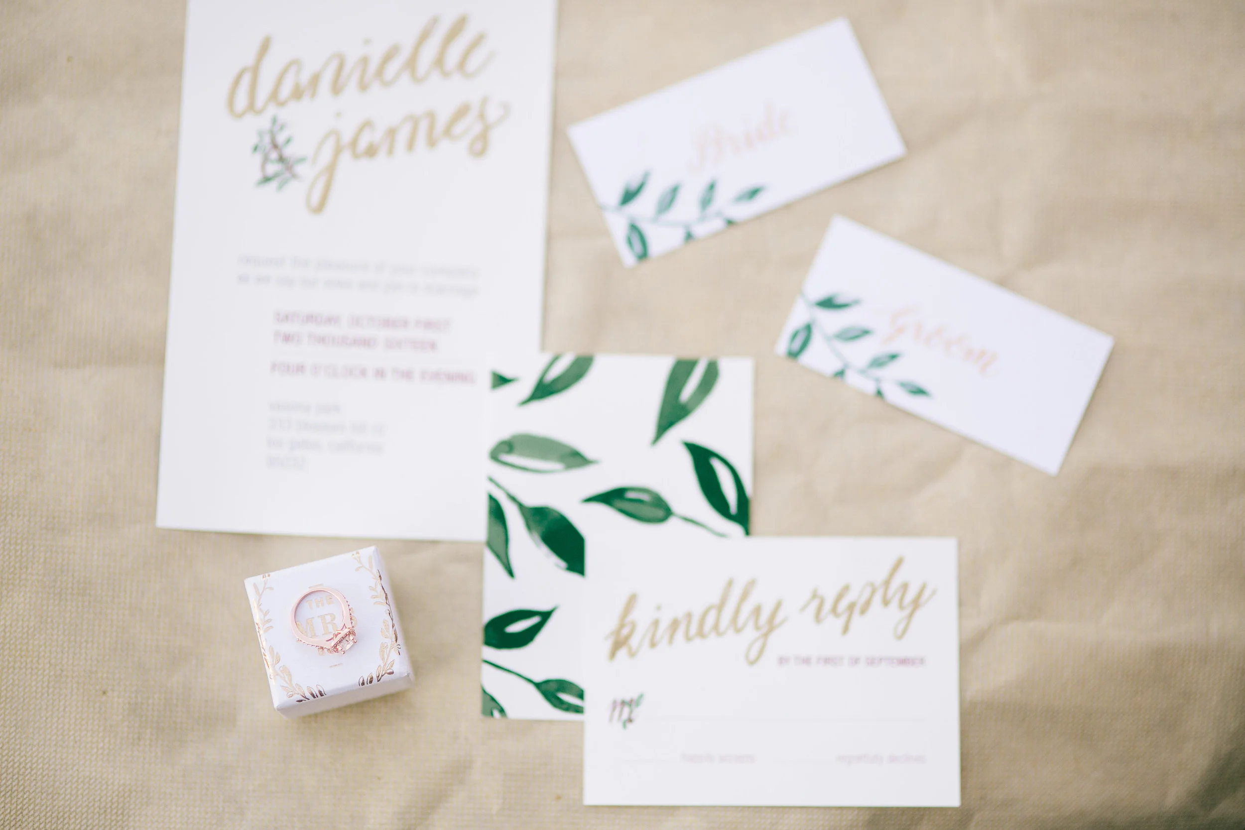 The beautiful invitation suite is hand-panted by Julia from Julia Hirsch Illustration and design. Not only did she hand painted the leaf pattern, the touch of gold hand lettering was an absolute must for the elegance we were looking to bring to this shoot.