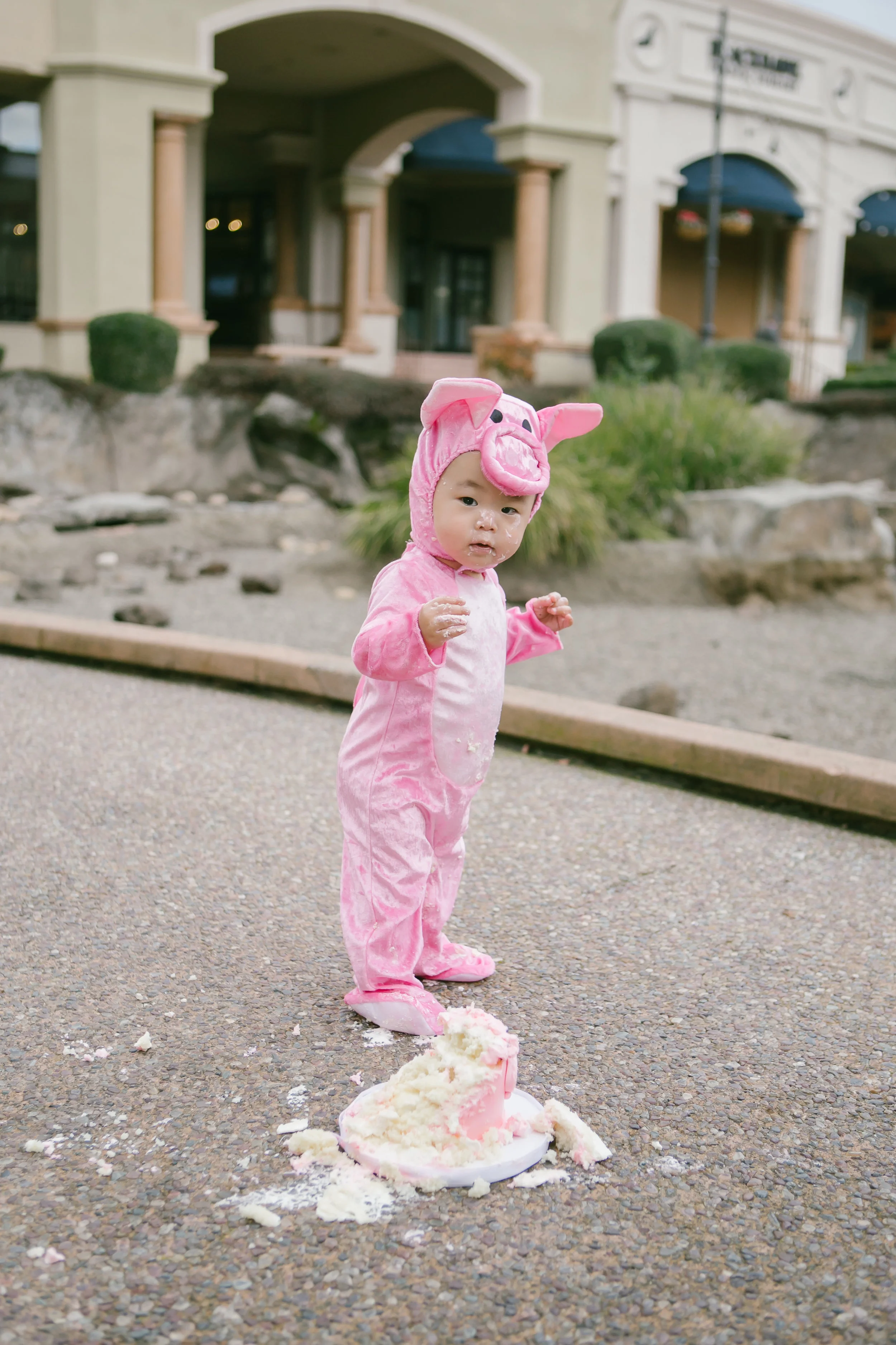 Senah's first birthday was full of fun! Ahnah got Senah three different outfits, one made her look like a beautiful princess with tulle, lace and a pretty flower crown. Her second outfit was the traditional Hanbok, full of bright colors. Senah's last outfit was the cutest piggy outfit. The party theme was inspired by the Mo Willems book, The elephant and piggie series, so it made perfect sense for Senah's last piggie outfit!
