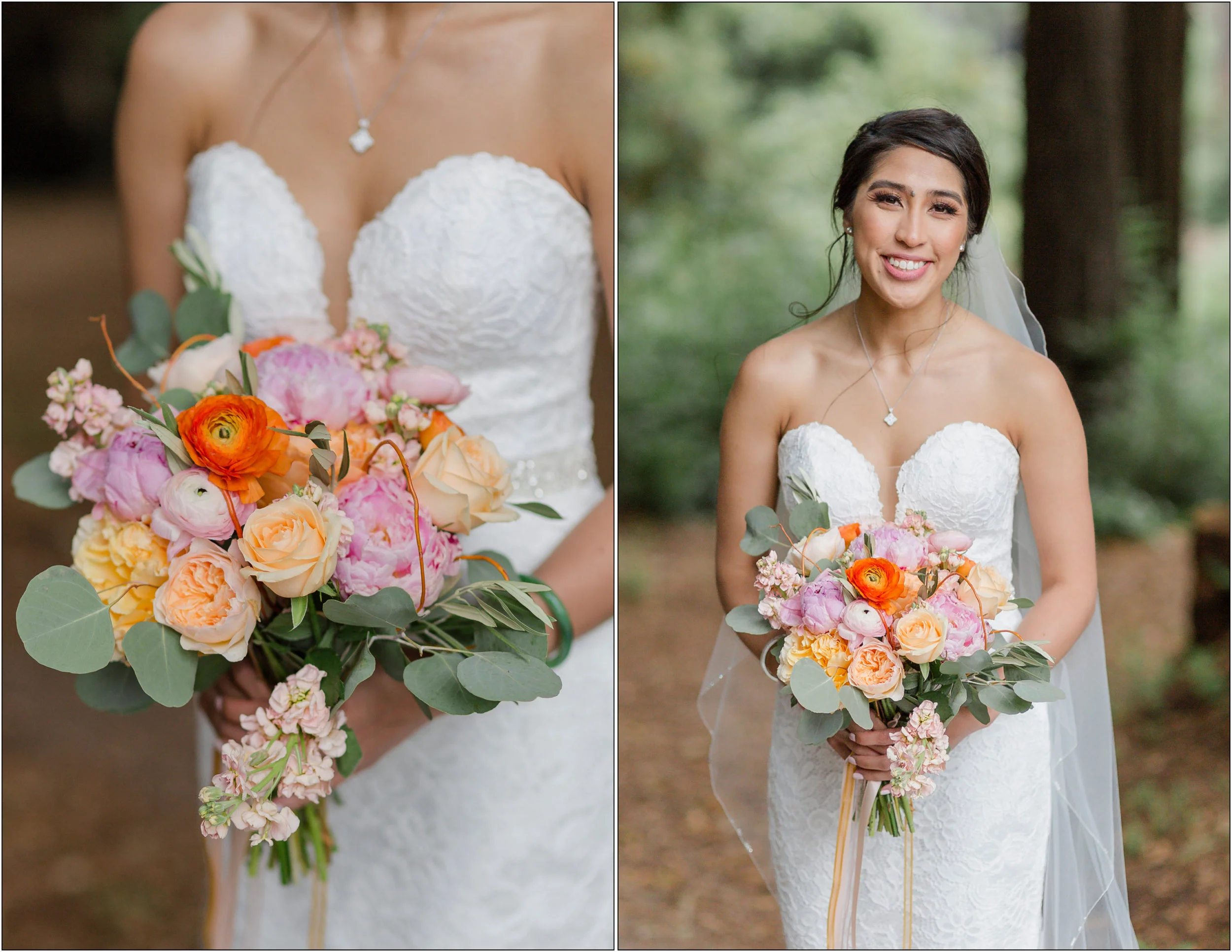Yvonne and Kevin's beautiful wedding was at the Mountain Terrace in Woodside. If you remember their engagement session, we took some fun photos with their pet dog Kona! On their wedding day, Kona also attended! If you look carefully at their invitation suite, you’ll see that Kona is featured.
