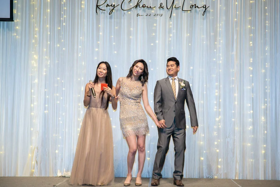 Venue: 台北萬豪酒店 Taipei Marriott Hotel Planning: 成雙婚禮顧問公司 Be merry wedding Reception Design: Mr. Wed 婚禮佈置 Makeup+Hair: 玖零造型 Jolly Dresses: Selena Huan Bridal, Demetrios Taiwan蒂米琪國際禮服館, Nicole + Felicia Couture Videography: 不賴影像製作BeLight Cinema